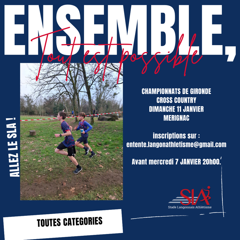 Inscriptions sur entente.langonathletisme@gmail.com avant mercredi 26 novembre 20h00.